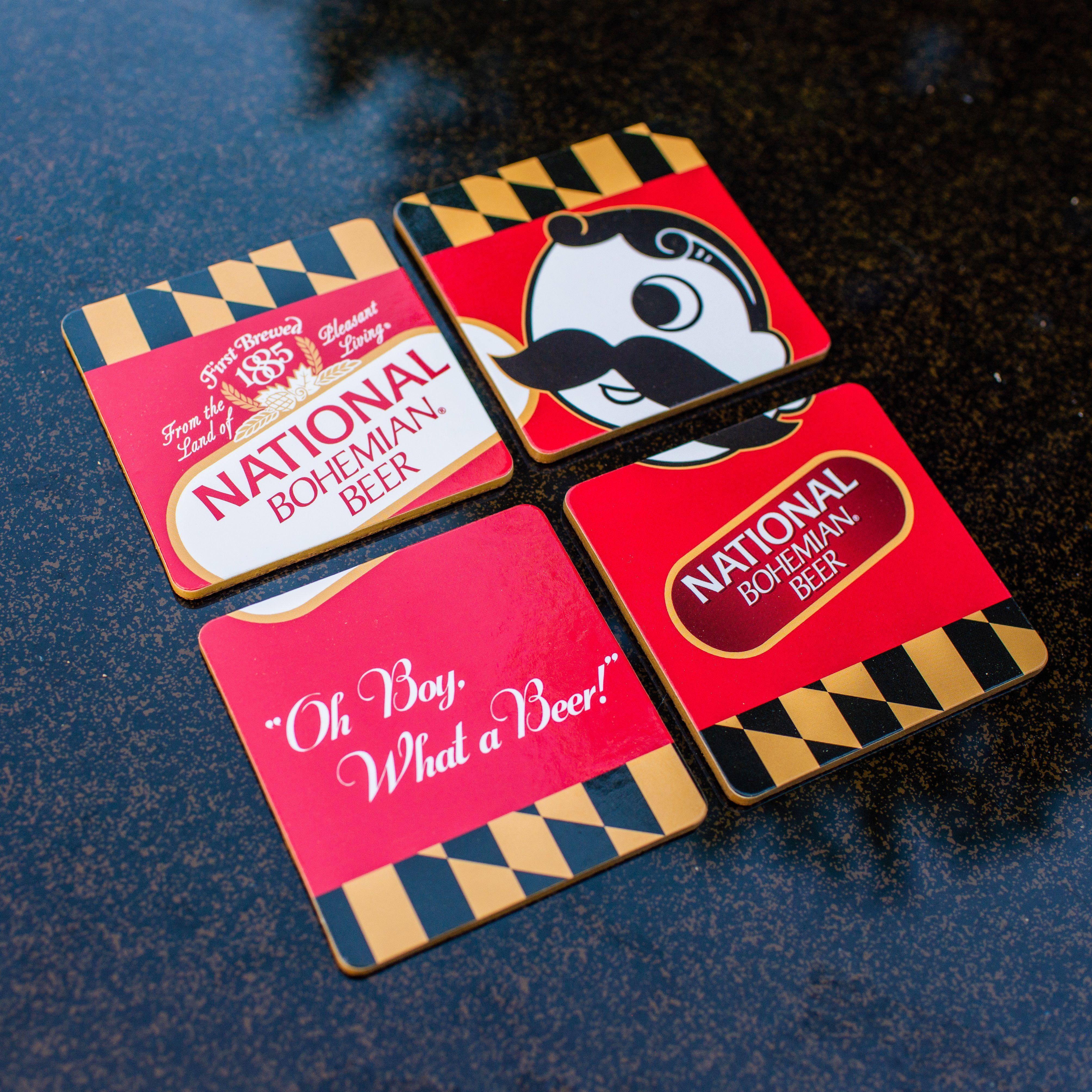 Keep your whole dining space Maryland-themed with our Natty Boh coasters! These stylish coasters featuring the iconic Natty Boh logo and the Bohtimore Classic Can theme, make great housewarming gifts for any new Maryland homeowner.