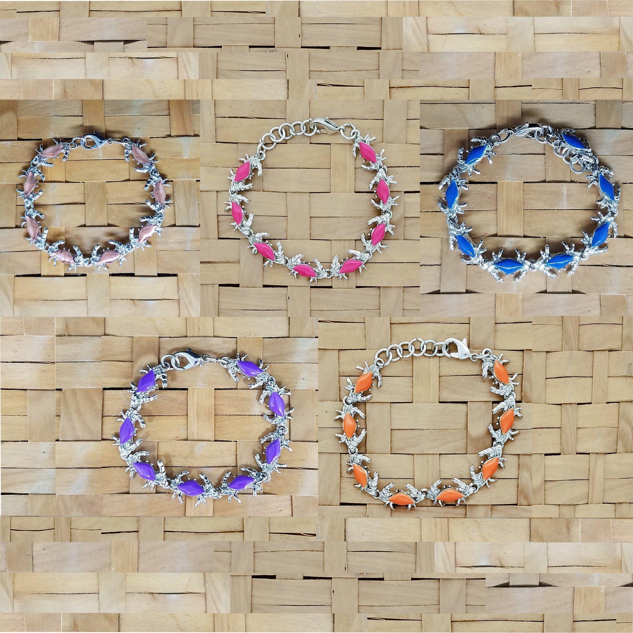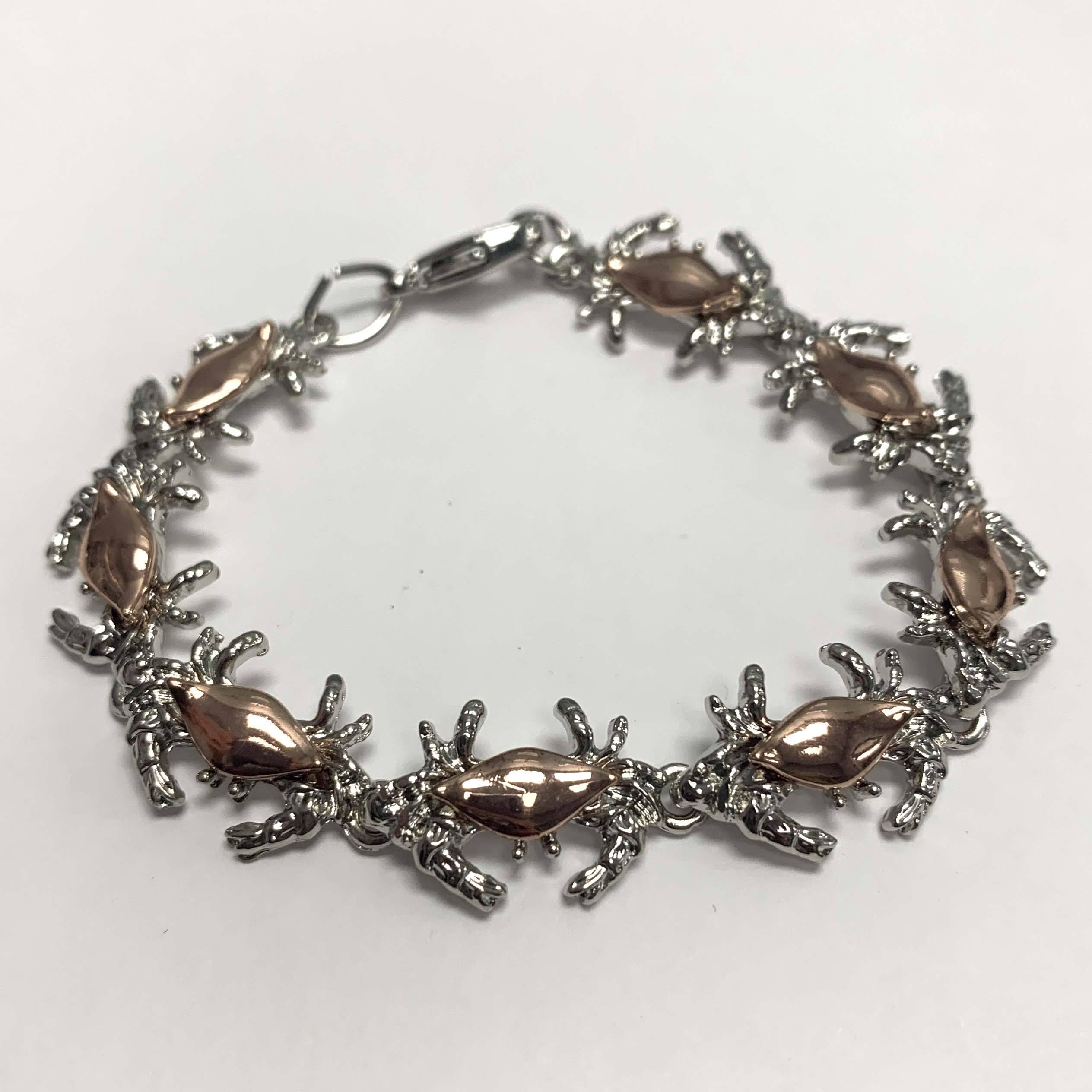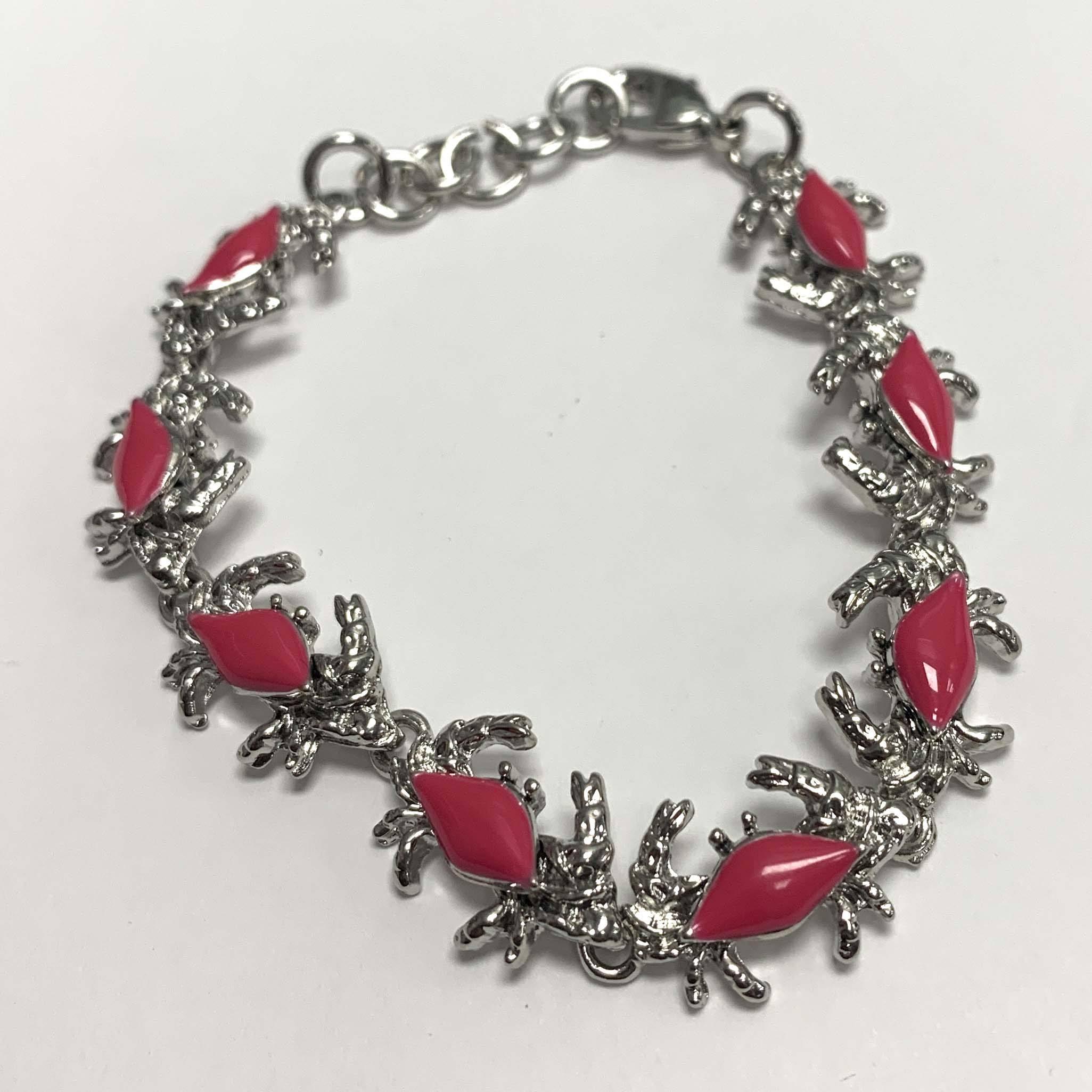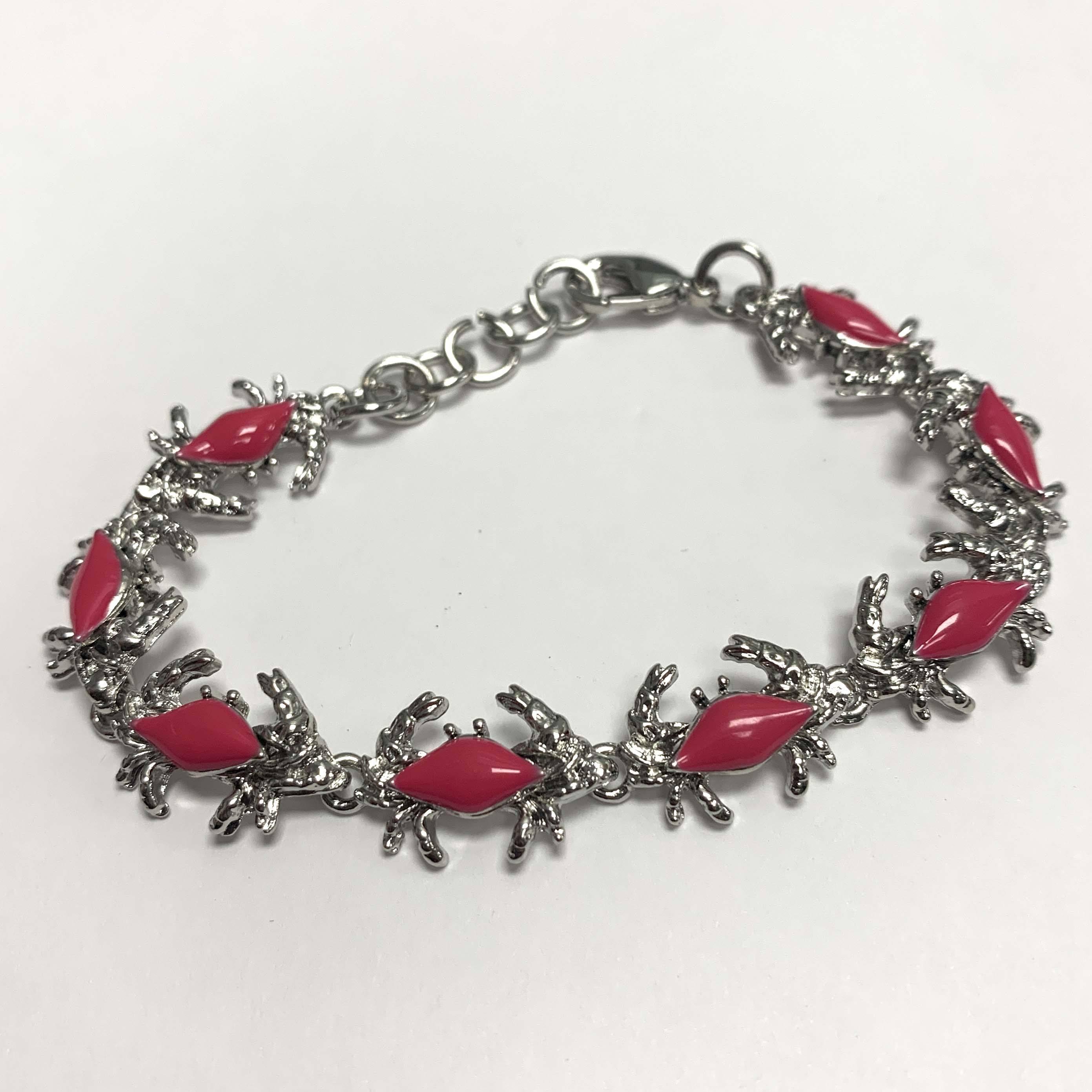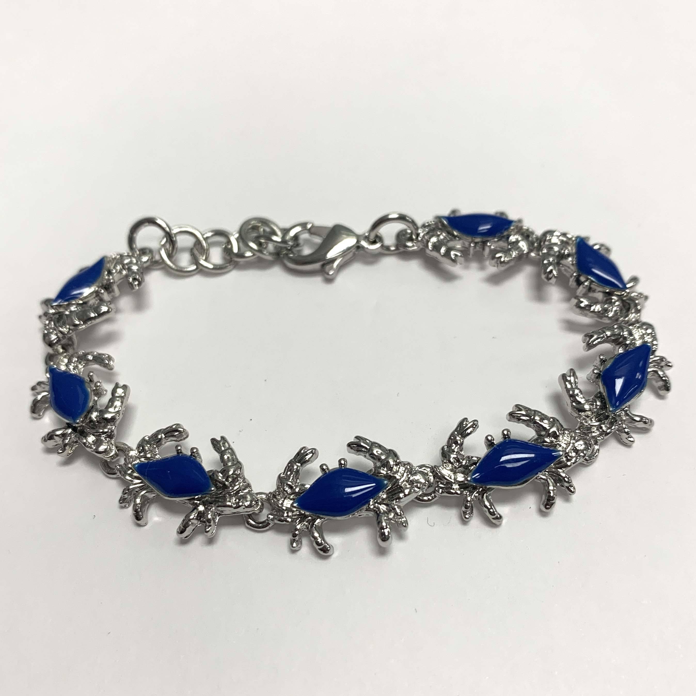 This stylish link bracelet is made from surgical steel and features blue crabs with a copper plated or enameled shell. Lots of colors to choose from!