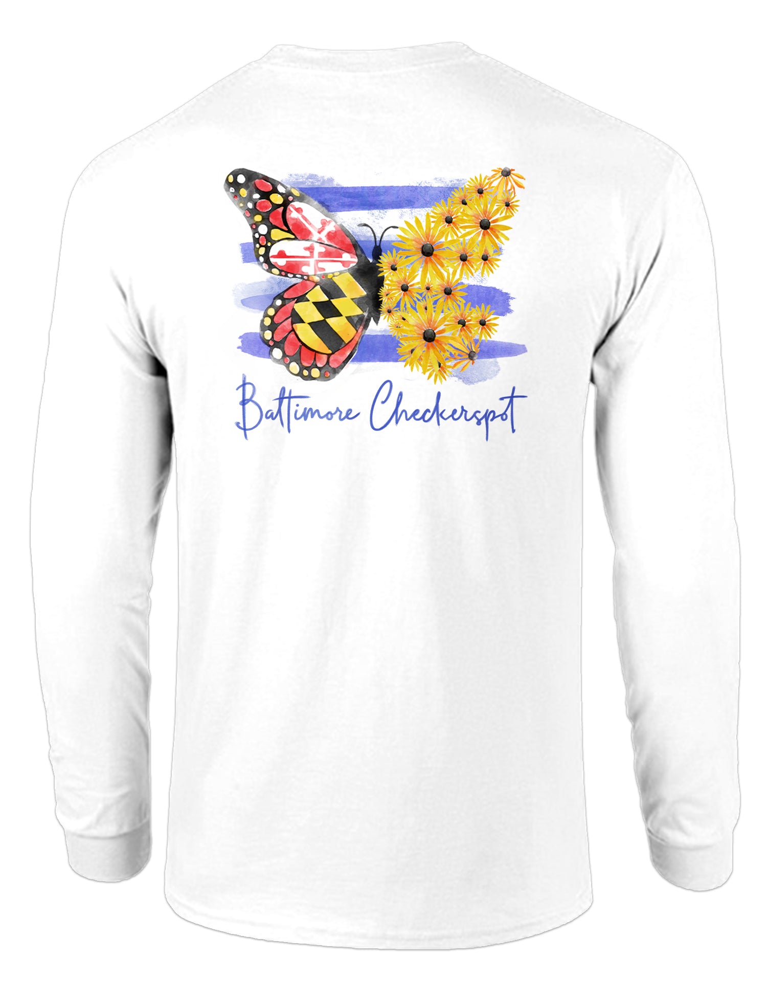 Watercolor Checkerspot Butterfly (White) / Long Sleeve Shirt