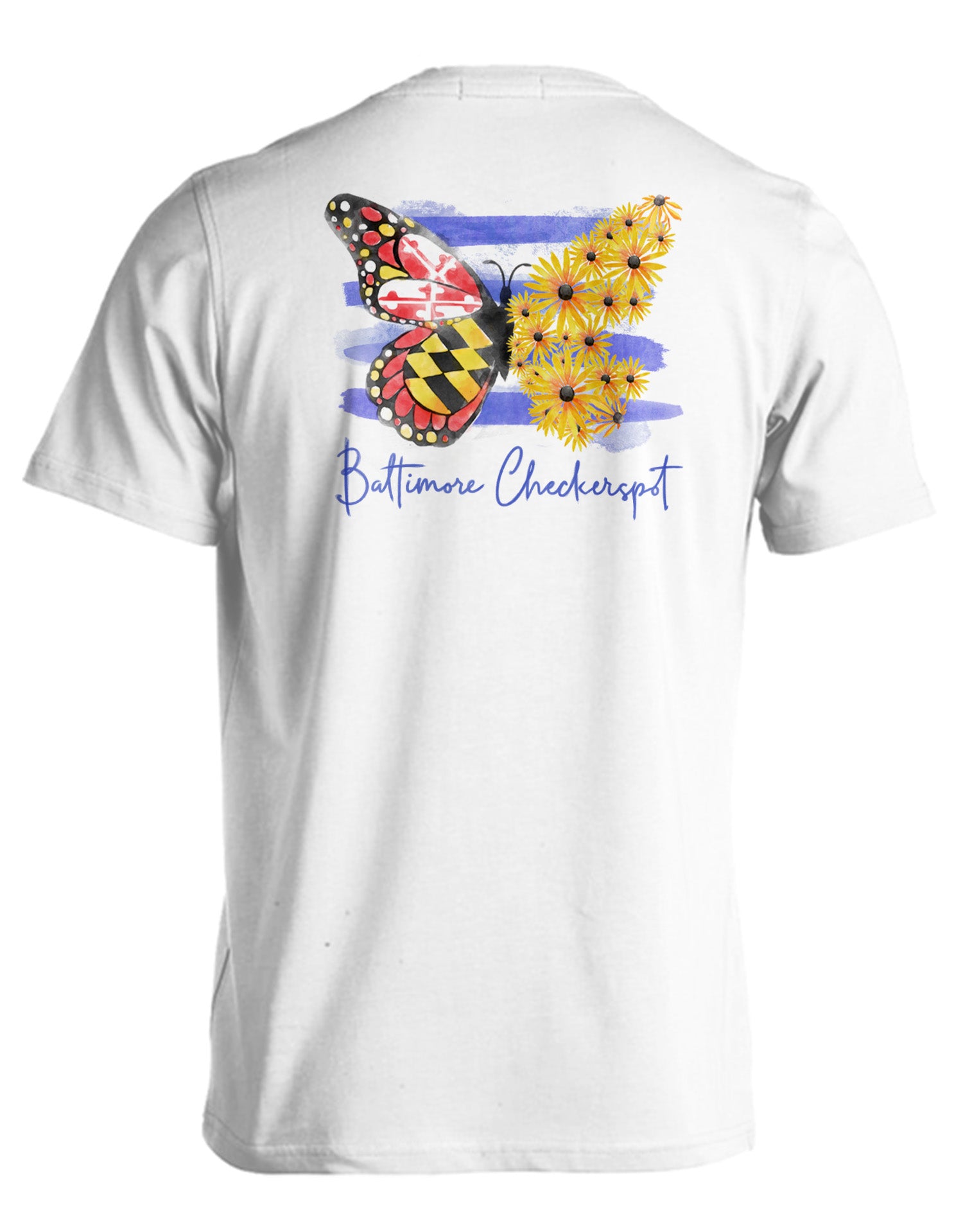 Watercolor Checkerspot Butterfly (White) / T-Shirt